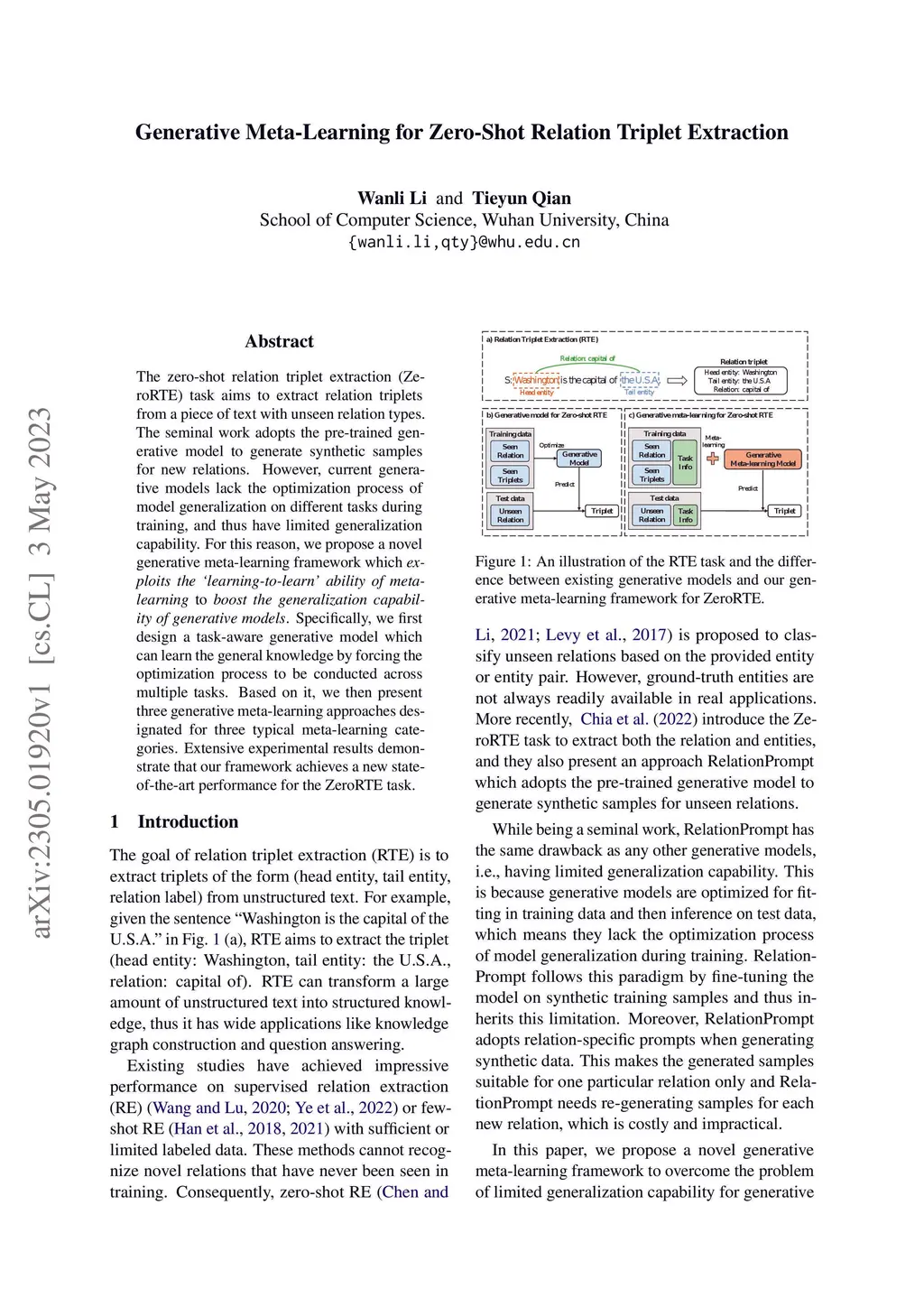 Generative Meta-Learning for Zero-Shot Relation Triplet Extraction