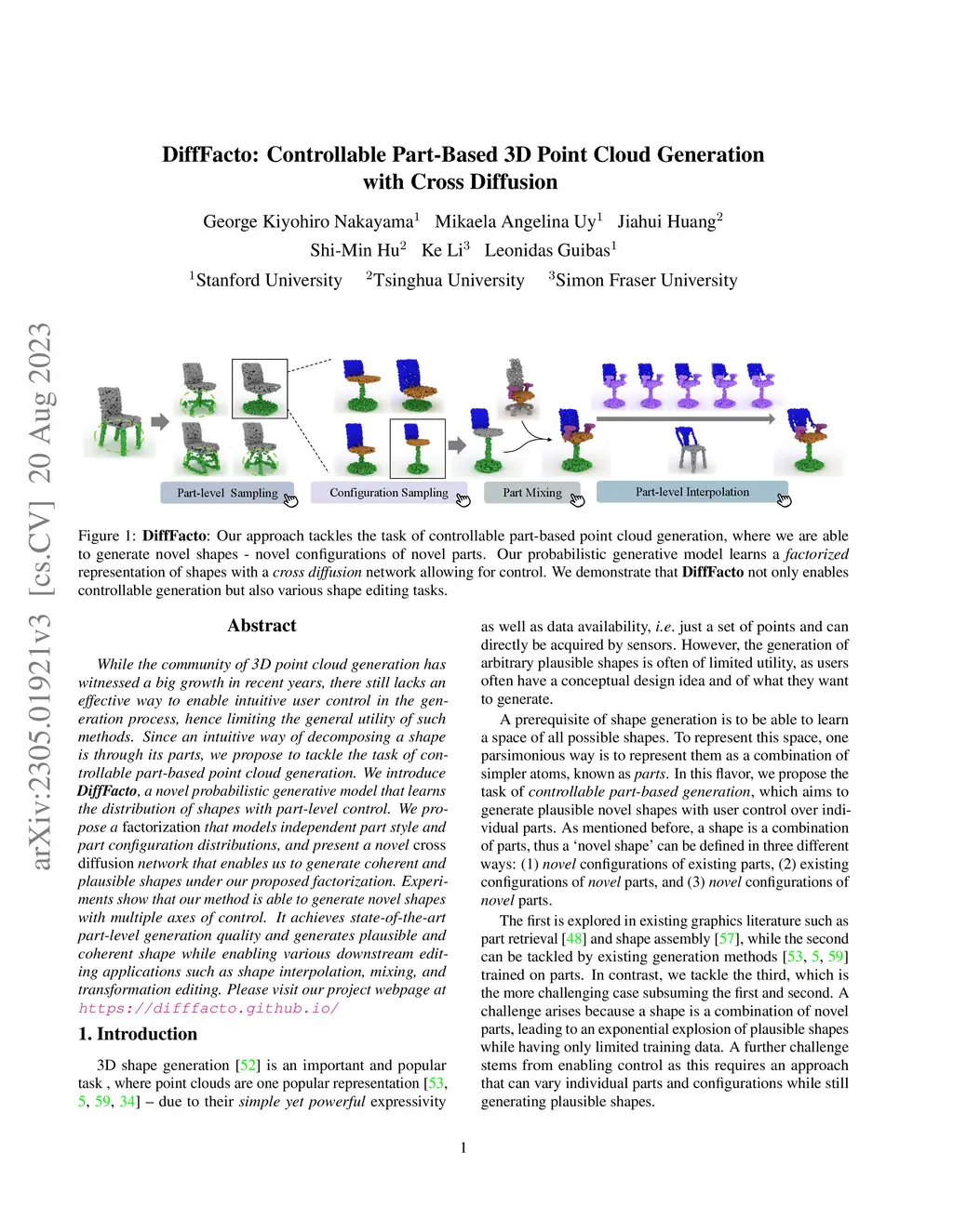 DiffFacto Controllable Part-Based 3D Point Cloud Generation with Cross