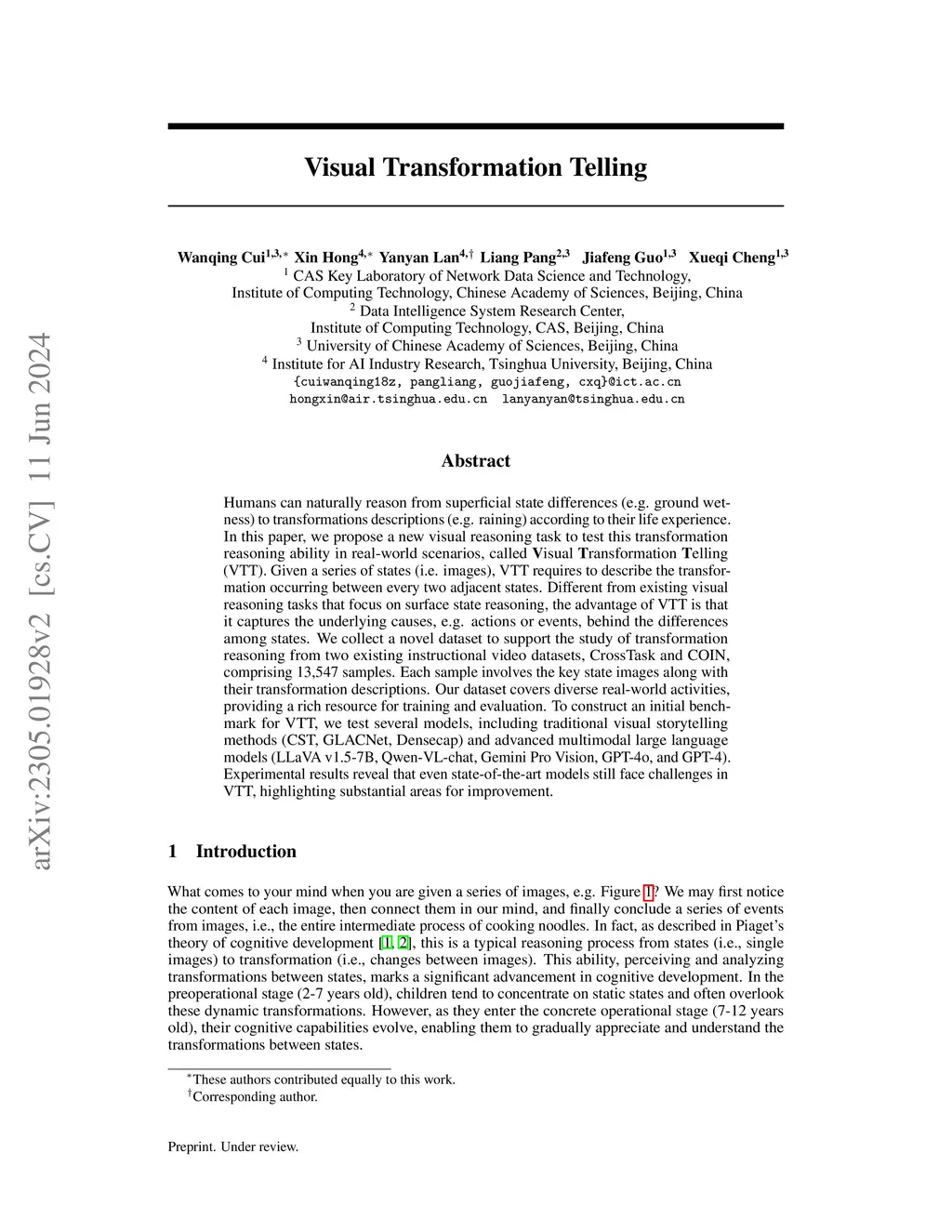 Humans can naturally reason from superficial state differences (e.g. ground wetness) to transformations descriptions (e.g. raining) according to their life experience. In this paper, we propose a new visual reasoning task to test this transformation reasoning ability in real-world scenarios, called \textbf{V}isual \textbf{T}ransformation \textbf{T}elling (VTT). Given a series of states (i.e. images), VTT requires to describe the transformation occurring between every two adjacent states. Different from existing visual reasoning tasks that focus on surface state reasoning, the advantage of VTT is that it captures the underlying causes, e.g. actions or events, behind the differences among states. We collect a novel dataset to support the study of transformation reasoning from two existing instructional video datasets, CrossTask and COIN, comprising 13,547 samples. Each sample involves the key state images along with their transformation descriptions. Our dataset covers diverse real-world activities, providing a rich resource for training and evaluation. To construct an initial benchmark for VTT, we test several models, including traditional visual storytelling methods (CST, GLACNet, Densecap) and advanced multimodal large language models (LLaVA v1.5-7B, Qwen-VL-chat, Gemini Pro Vision, GPT-4o, and GPT-4). Experimental results reveal that even state-of-the-art models still face challenges in VTT, highlighting substantial areas for improvement.