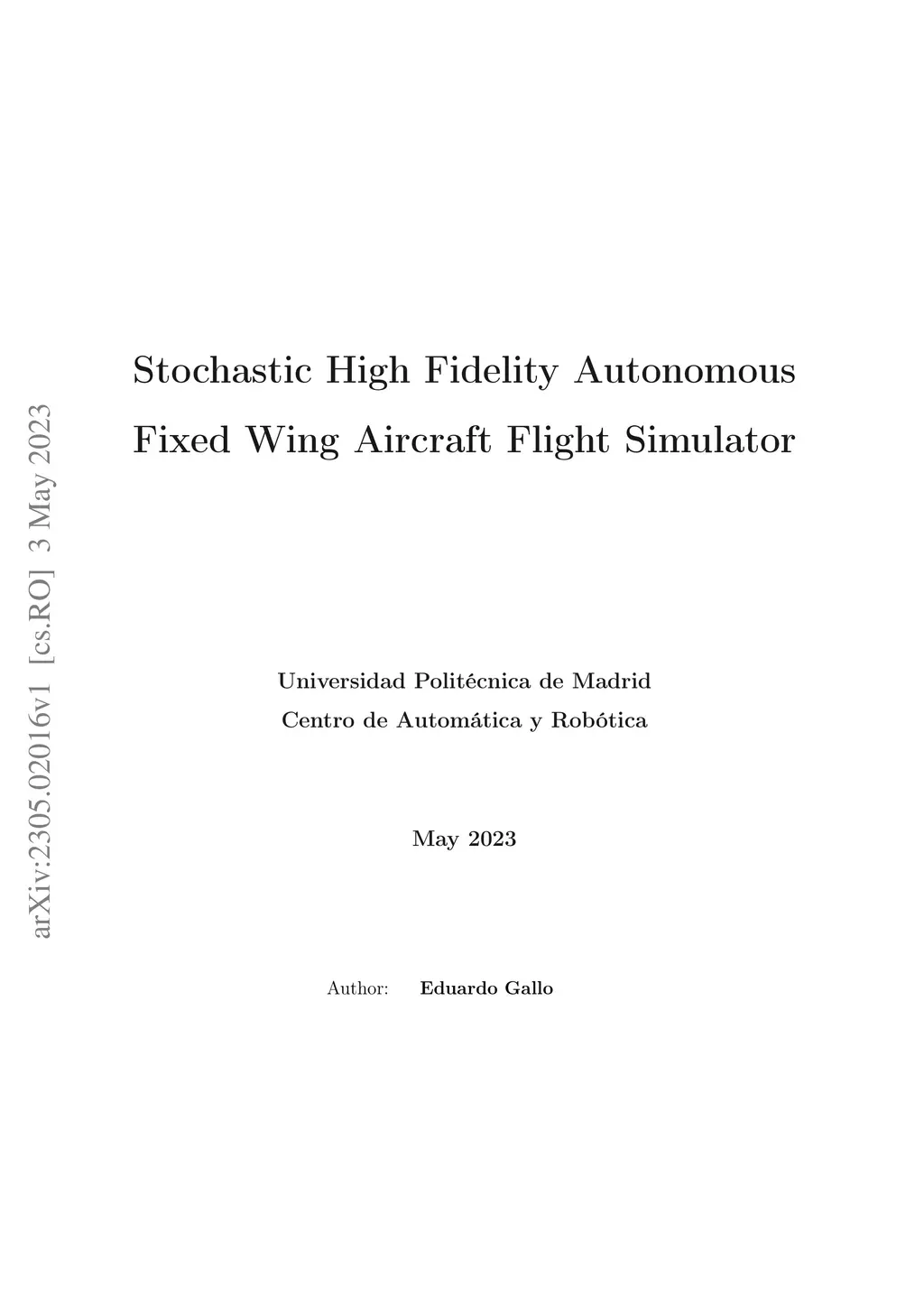 Stochastic High Fidelity Autonomous Fixed Wing Aircraft Flight Simulator