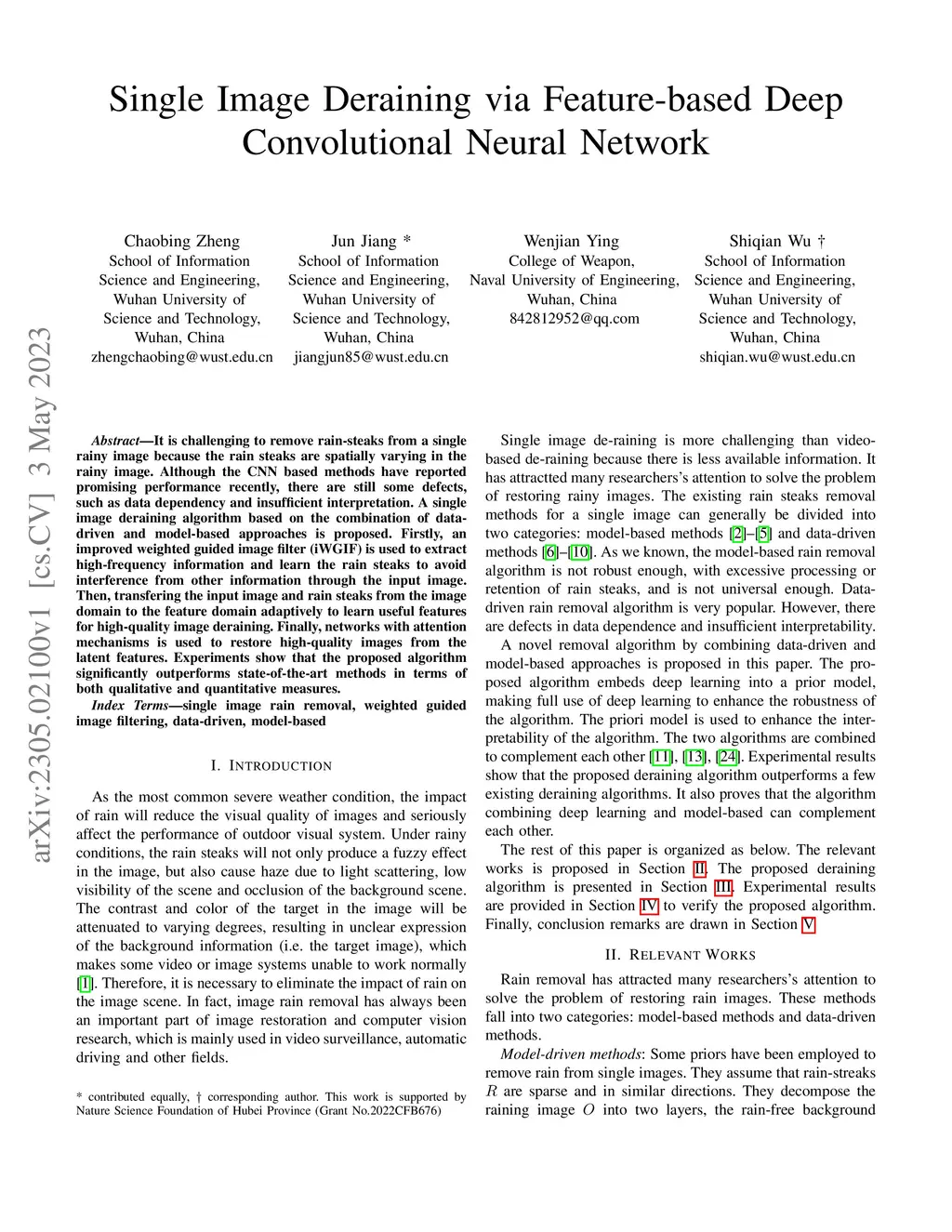 Single Image Deraining via Feature-based Deep Convolutional Neural