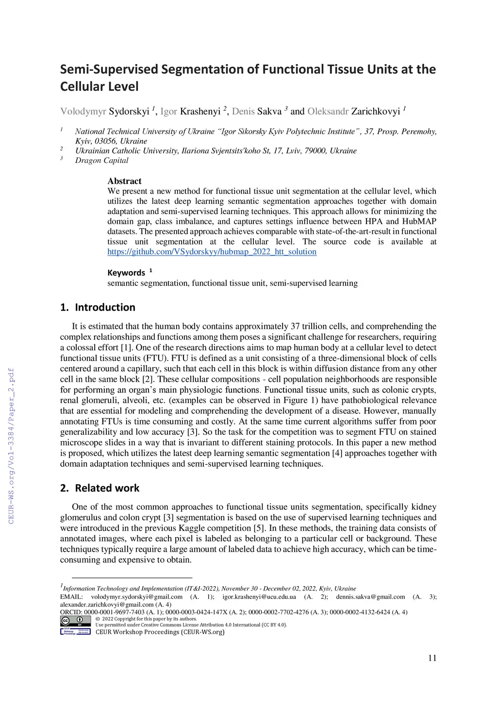 We present a new method for functional tissue unit segmentation at the cellular level, which utilizes the latest deep learning semantic segmentation approaches together with domain adaptation and semi-supervised learning techniques. This approach allows for minimizing the domain gap, class imbalance, and captures settings influence between HPA and HubMAP datasets. The presented approach achieves comparable with state-of-the-art-result in functional tissue unit segmentation at the cellular level. The source code is available at https://github.com/VSydorskyy/hubmap_2022_htt_solution