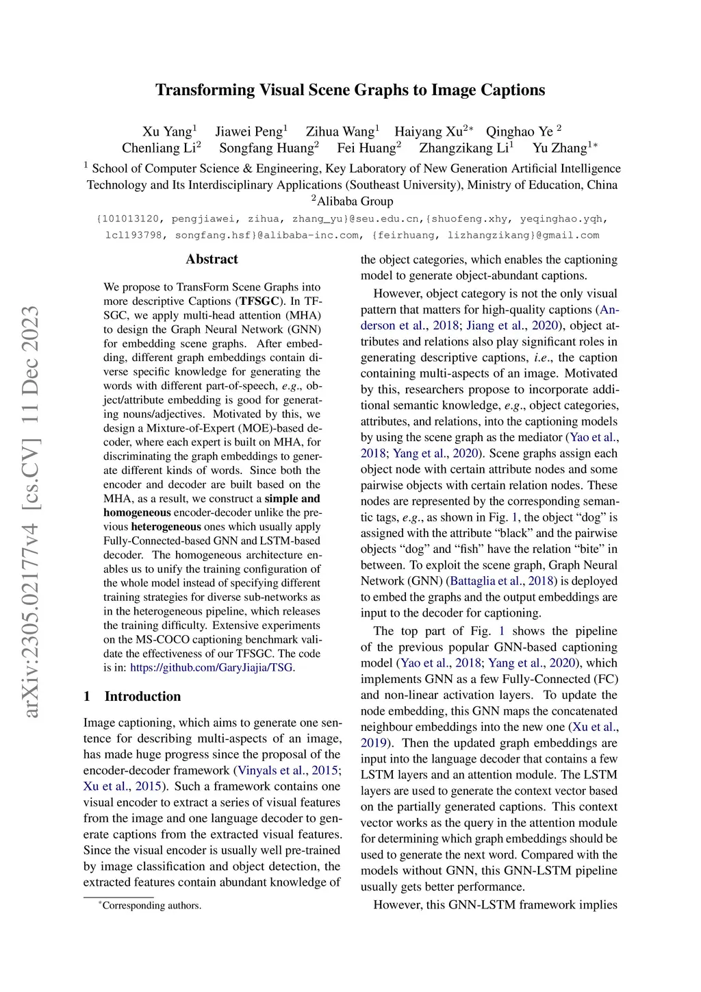 We propose to Transform Scene Graphs (TSG) into more descriptive captions. In TSG, we apply multi-head attention (MHA) to design the Graph Neural Network (GNN) for embedding scene graphs. After embedding, different graph embeddings contain diverse specific knowledge for generating the words with different part-of-speech, e.g., object/attribute embedding is good for generating nouns/adjectives. Motivated by this, we design a Mixture-of-Expert (MOE)-based decoder, where each expert is built on MHA, for discriminating the graph embeddings to generate different kinds of words. Since both the encoder and decoder are built based on the MHA, as a result, we construct a homogeneous encoder-decoder unlike the previous heterogeneous ones which usually apply Fully-Connected-based GNN and LSTM-based decoder. The homogeneous architecture enables us to unify the training configuration of the whole model instead of specifying different training strategies for diverse sub-networks as in the heterogeneous pipeline, which releases the training difficulty. Extensive experiments on the MS-COCO captioning benchmark validate the effectiveness of our TSG. The code is in: https://github.com/GaryJiajia/TSG.