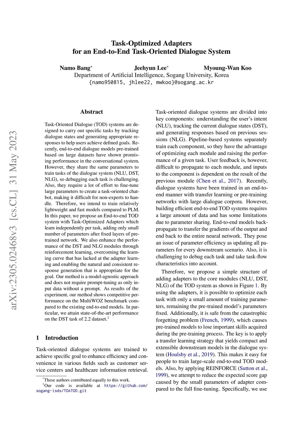 Task-Optimized Adapters for an End-to-End Task-Oriented Dialogue System
