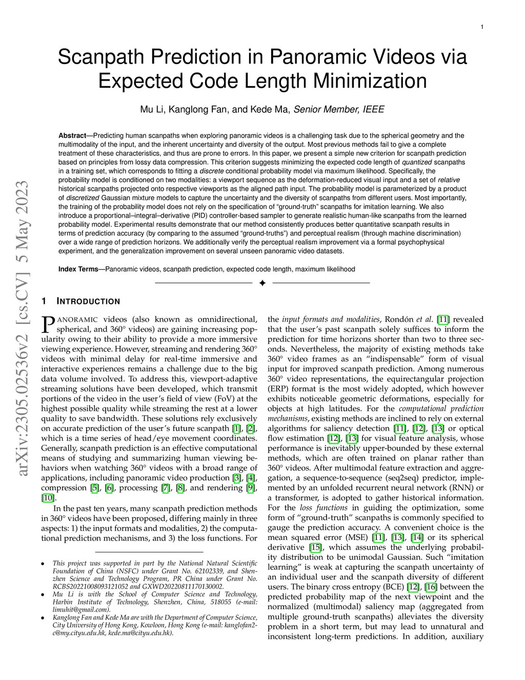 Scanpath Prediction in Panoramic Videos via Expected Code Length Minimization