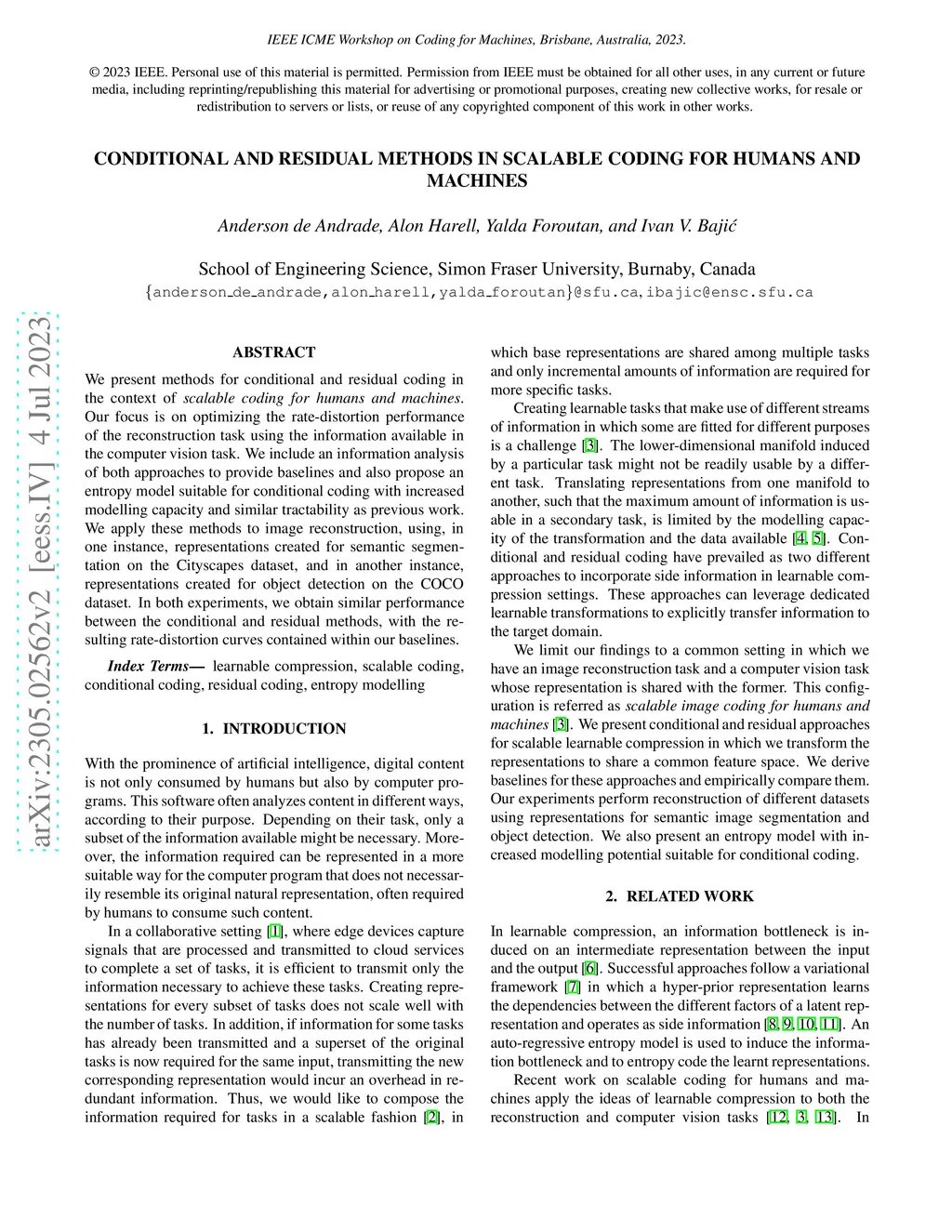 Conditional and Residual Methods in Scalable Coding for Humans and