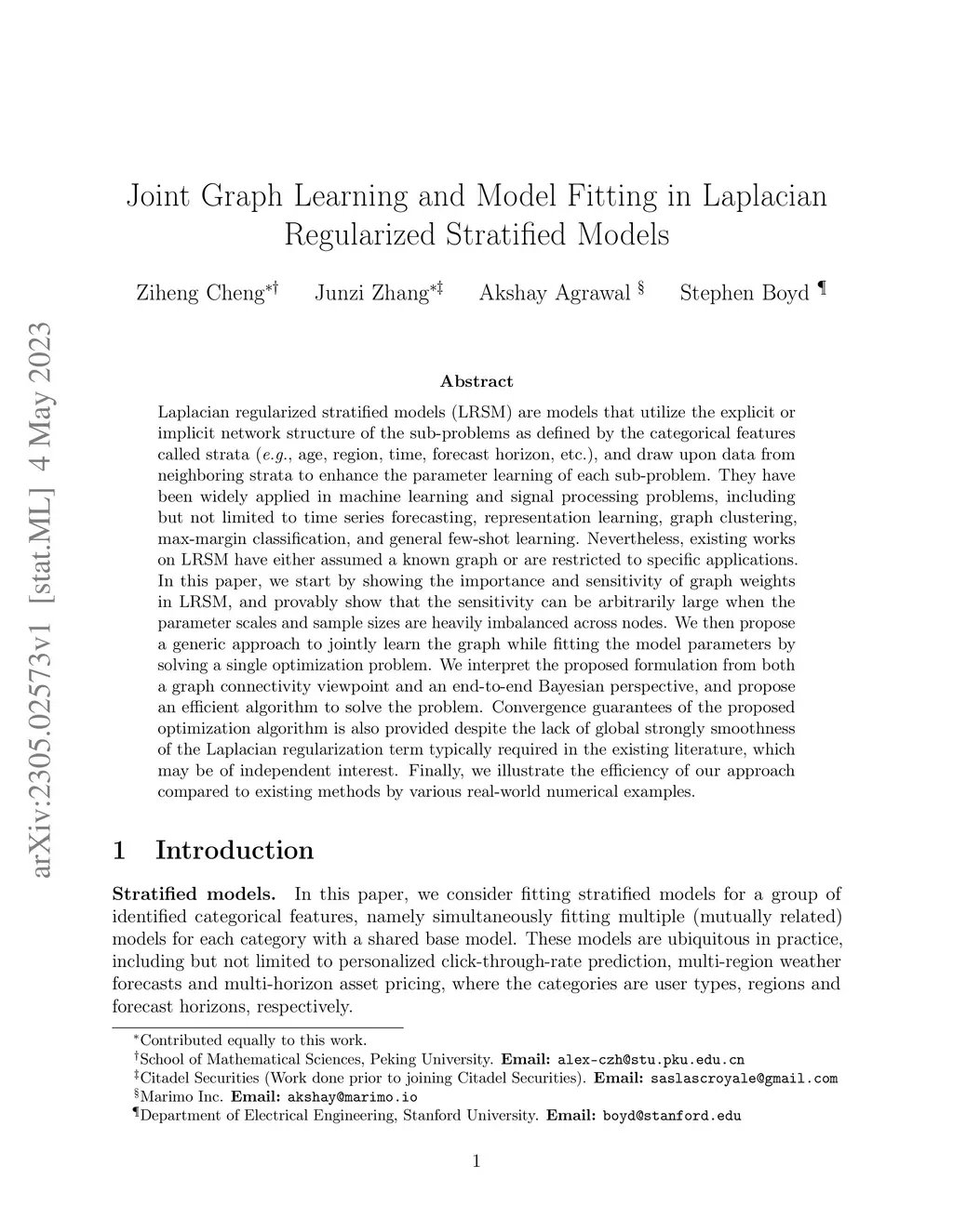 Laplacian regularized stratified models (LRSM) are models that utilize the explicit or implicit network structure of the sub-problems as defined by the categorical features called strata (e.g., age, region, time, forecast horizon, etc.), and draw upon data from neighboring strata to enhance the parameter learning of each sub-problem. They have been widely applied in machine learning and signal processing problems, including but not limited to time series forecasting, representation learning, graph clustering, max-margin classification, and general few-shot learning. Nevertheless, existing works on LRSM have either assumed a known graph or are restricted to specific applications. In this paper, we start by showing the importance and sensitivity of graph weights in LRSM, and provably show that the sensitivity can be arbitrarily large when the parameter scales and sample sizes are heavily imbalanced across nodes. We then propose a generic approach to jointly learn the graph while fitting the model parameters by solving a single optimization problem. We interpret the proposed formulation from both a graph connectivity viewpoint and an end-to-end Bayesian perspective, and propose an efficient algorithm to solve the problem. Convergence guarantees of the proposed optimization algorithm is also provided despite the lack of global strongly smoothness of the Laplacian regularization term typically required in the existing literature, which may be of independent interest. Finally, we illustrate the efficiency of our approach compared to existing methods by various real-world numerical examples.