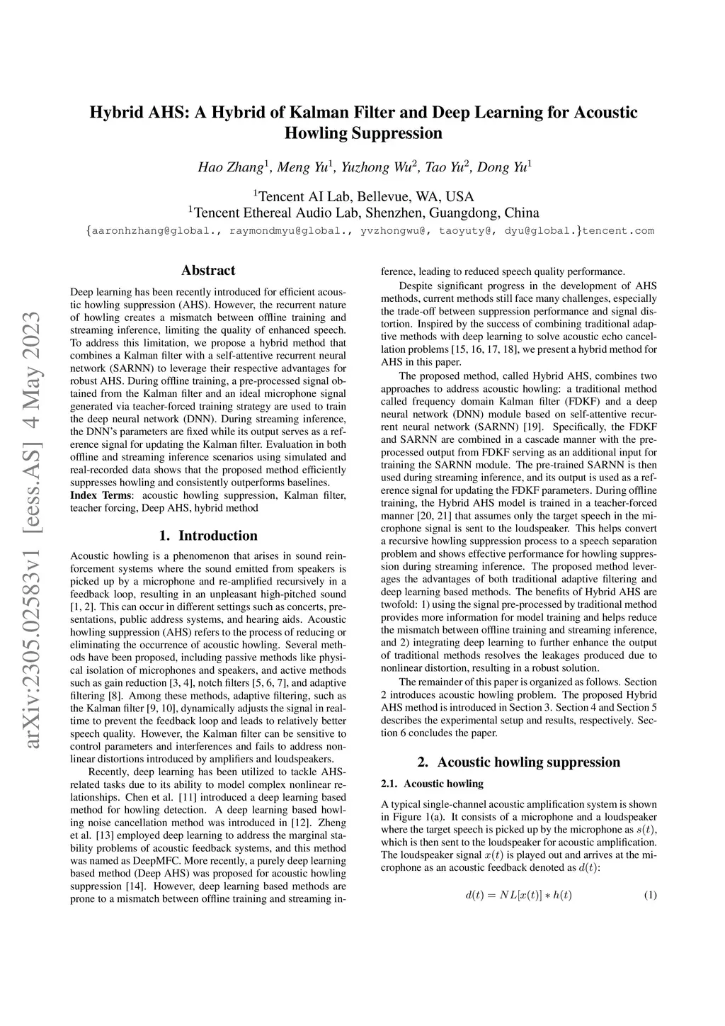 Hybrid AHS: A Hybrid of Kalman Filter and Deep Learning for Acoustic