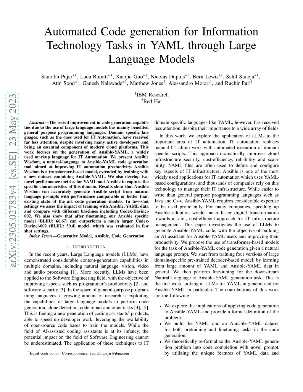 Automated Code generation for Information Technology Tasks in YAML