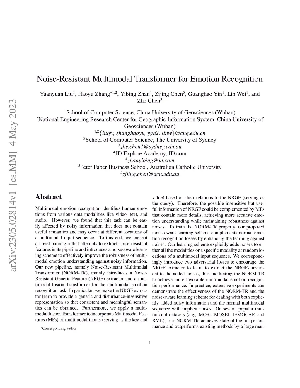 Noise-Resistant Multimodal Transformer for Emotion Recognition
