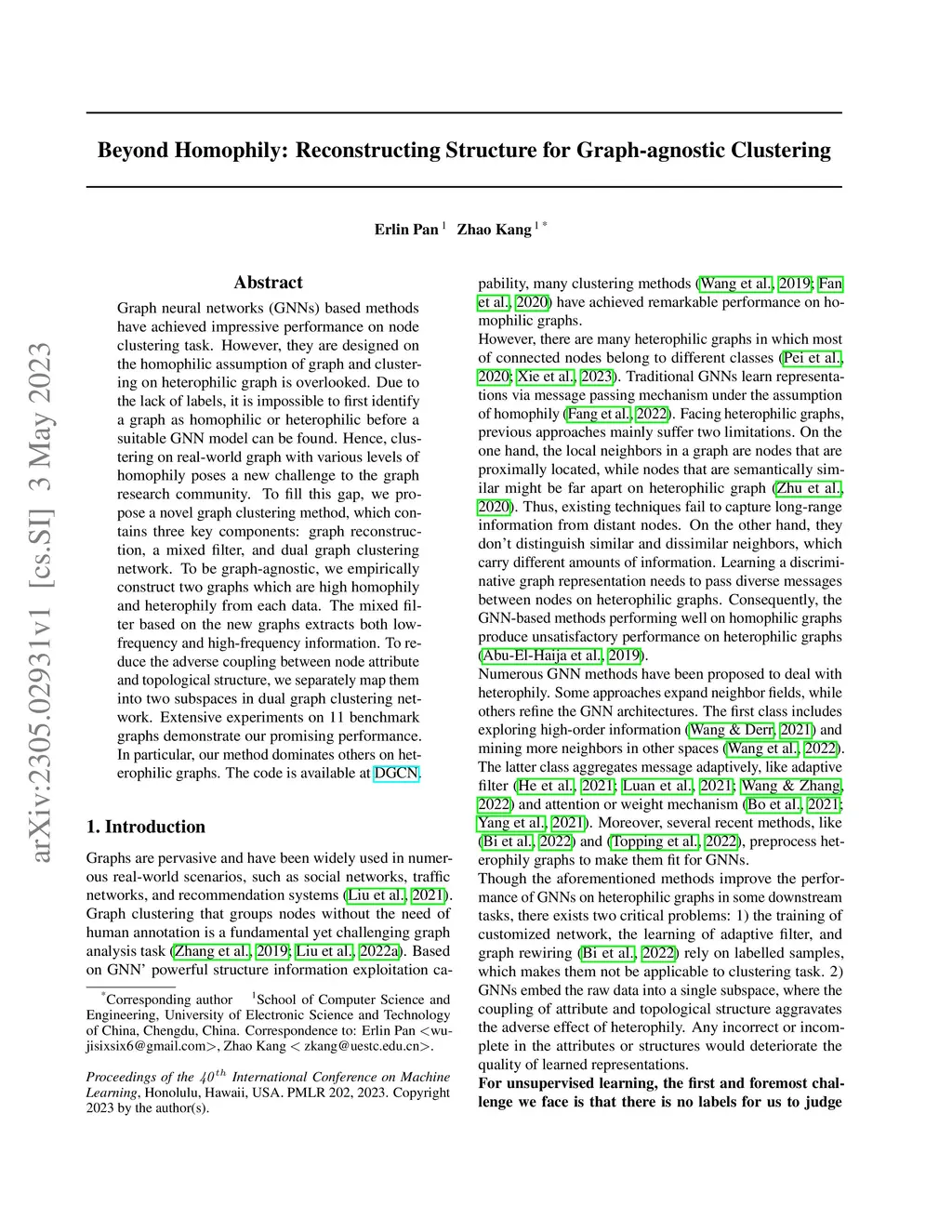 Beyond Homophily: Reconstructing Structure for Graph-agnostic Clustering
