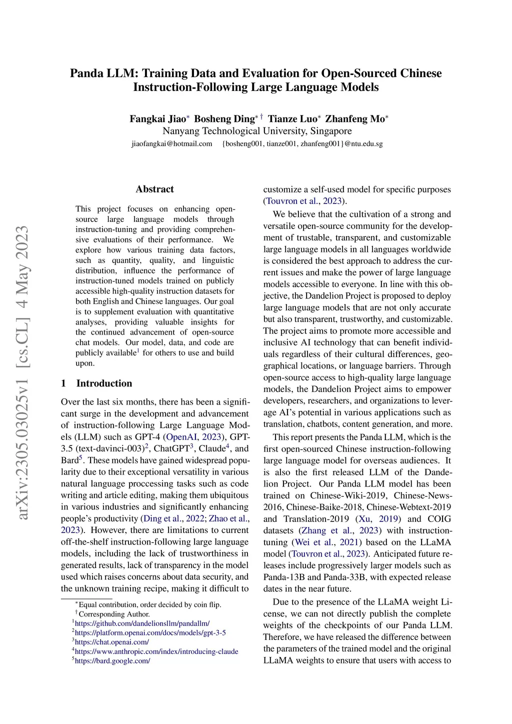 Panda LLM: Training Data and Evaluation for Open-Sourced Chinese