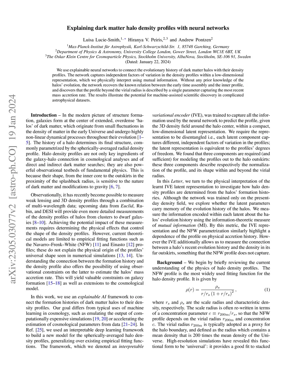 We use explainable neural networks to connect the evolutionary history of dark matter halos with their density profiles. The network captures independent factors of variation in the density profiles within a low-dimensional representation, which we physically interpret using mutual information. Without any prior knowledge of the halos' evolution, the network recovers the known relation between the early time assembly and the inner profile, and discovers that the profile beyond the virial radius is described by a single parameter capturing the most recent mass accretion rate. The results illustrate the potential for machine-assisted scientific discovery in complicated astrophysical datasets.