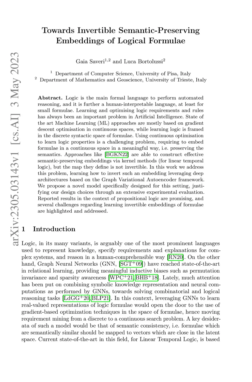 Towards Invertible Semantic-Preserving Embeddings of Logical Formulae