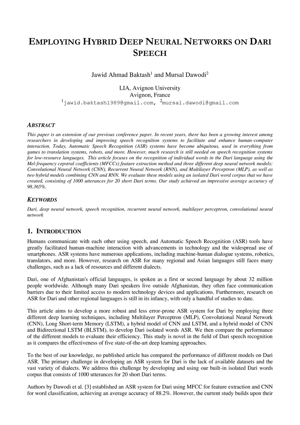 Employing Hybrid Deep Neural Networks on Dari Speech
