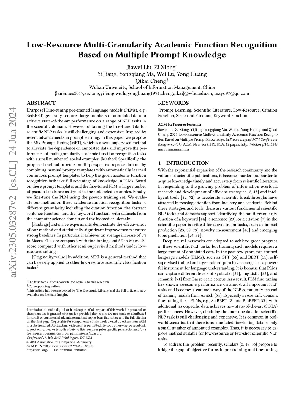 Low-Resource Multi-Granularity Academic Function Recognition Based on