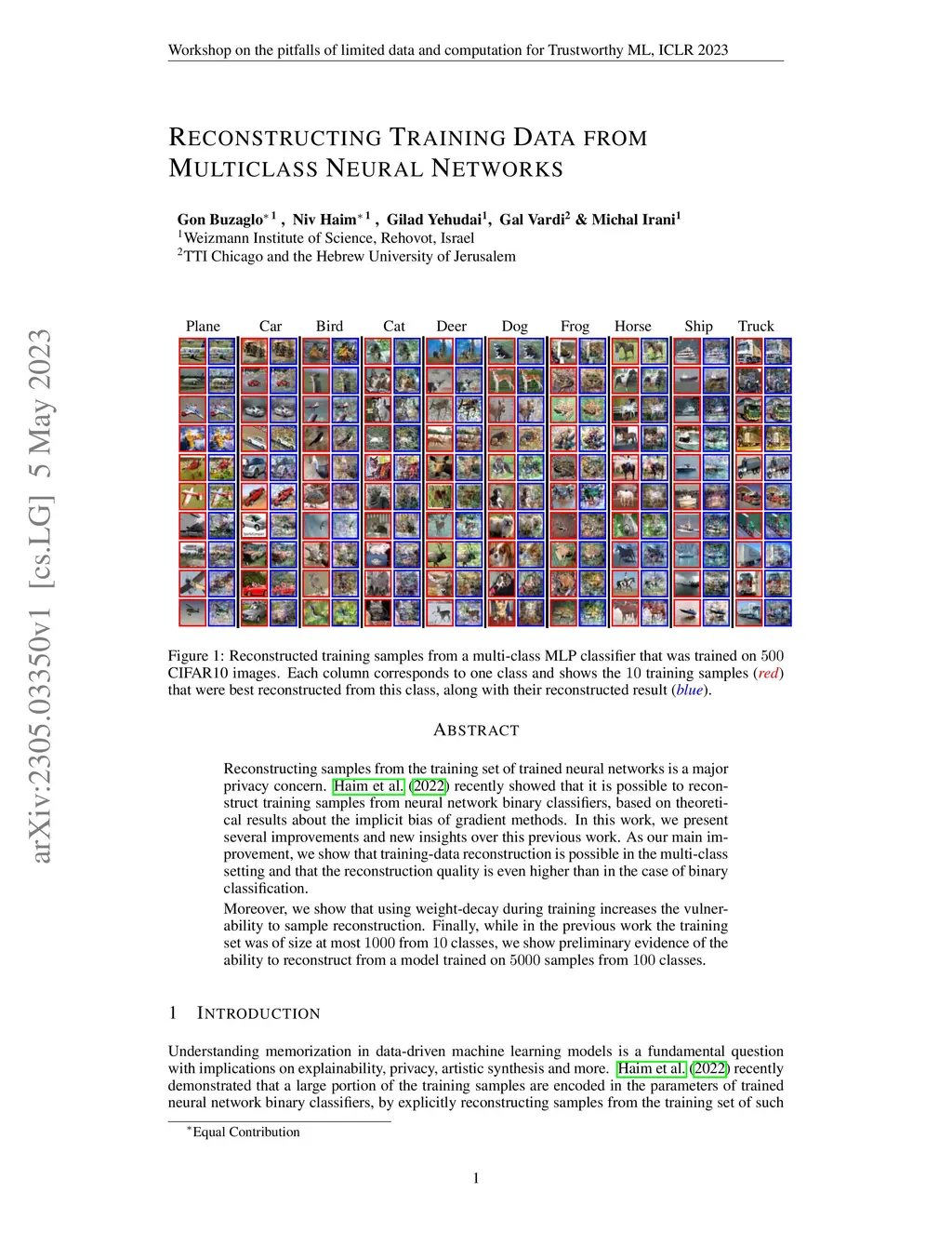 Reconstructing samples from the training set of trained neural networks is a major privacy concern. Haim et al. (2022) recently showed that it is possible to reconstruct training samples from neural network binary classifiers, based on theoretical results about the implicit bias of gradient methods. In this work, we present several improvements and new insights over this previous work. As our main improvement, we show that training-data reconstruction is possible in the multi-class setting and that the reconstruction quality is even higher than in the case of binary classification. Moreover, we show that using weight-decay during training increases the vulnerability to sample reconstruction. Finally, while in the previous work the training set was of size at most from classes, we show preliminary evidence of the ability to reconstruct from a model trained on samples from classes.