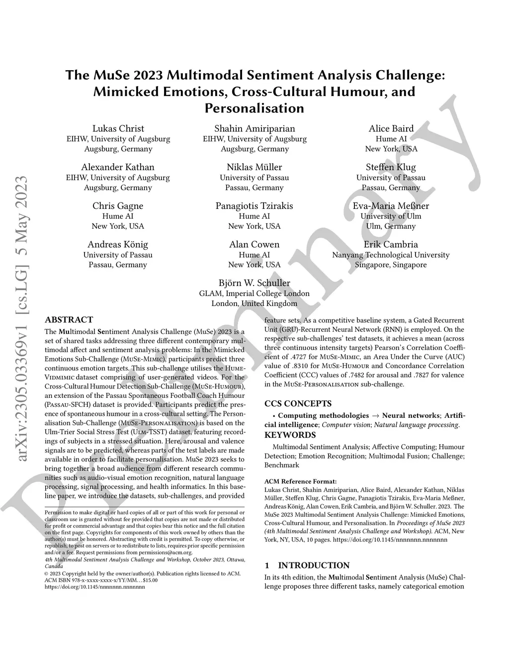 The MuSe 2023 Multimodal Sentiment Analysis Challenge: Mimicked