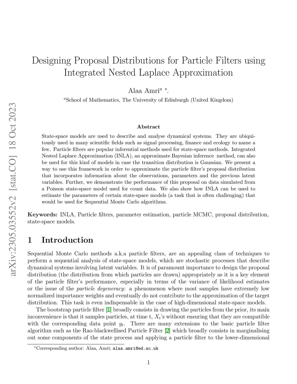 State-space models are used to describe and analyse dynamical systems. They are ubiquitously used in many scientific fields such as signal processing, finance and ecology to name a few. Particle filters are popular inferential methods used for state-space methods. Integrated Nested Laplace Approximation (INLA), an approximate Bayesian inference method, can also be used for this kind of models in case the transition distribution is Gaussian. We present a way to use this framework in order to approximate the particle filter's proposal distribution that incorporates information about the observations, parameters and the previous latent variables. Further, we demonstrate the performance of this proposal on data simulated from a Poisson state-space model used for count data. We also show how INLA can be used to estimate the parameters of certain state-space models (a task that is often challenging) that would be used for Sequential Monte Carlo algorithms.