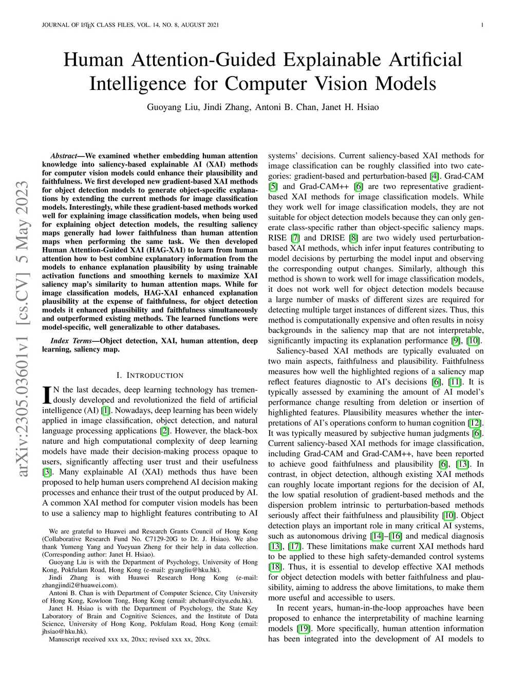 We examined whether embedding human attention knowledge into saliency-based explainable AI (XAI) methods for computer vision models could enhance their plausibility and faithfulness. We first developed new gradient-based XAI methods for object detection models to generate object-specific explanations by extending the current methods for image classification models. Interestingly, while these gradient-based methods worked well for explaining image classification models, when being used for explaining object detection models, the resulting saliency maps generally had lower faithfulness than human attention maps when performing the same task. We then developed Human Attention-Guided XAI (HAG-XAI) to learn from human attention how to best combine explanatory information from the models to enhance explanation plausibility by using trainable activation functions and smoothing kernels to maximize XAI saliency map's similarity to human attention maps. While for image classification models, HAG-XAI enhanced explanation plausibility at the expense of faithfulness, for object detection models it enhanced plausibility and faithfulness simultaneously and outperformed existing methods. The learned functions were model-specific, well generalizable to other databases.