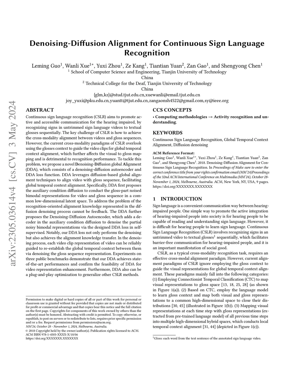 Denoising-Diffusion Alignment for Continuous Sign Language Recognition