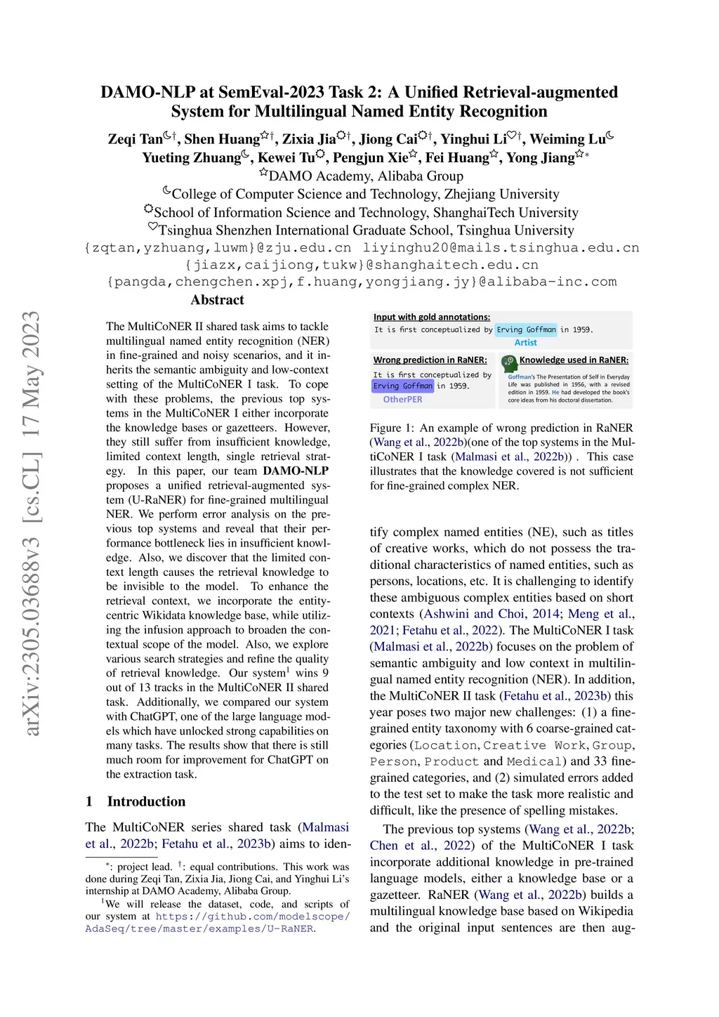 DAMO-NLP at SemEval-2023 Task 2: A Unified Retrieval-augmented System