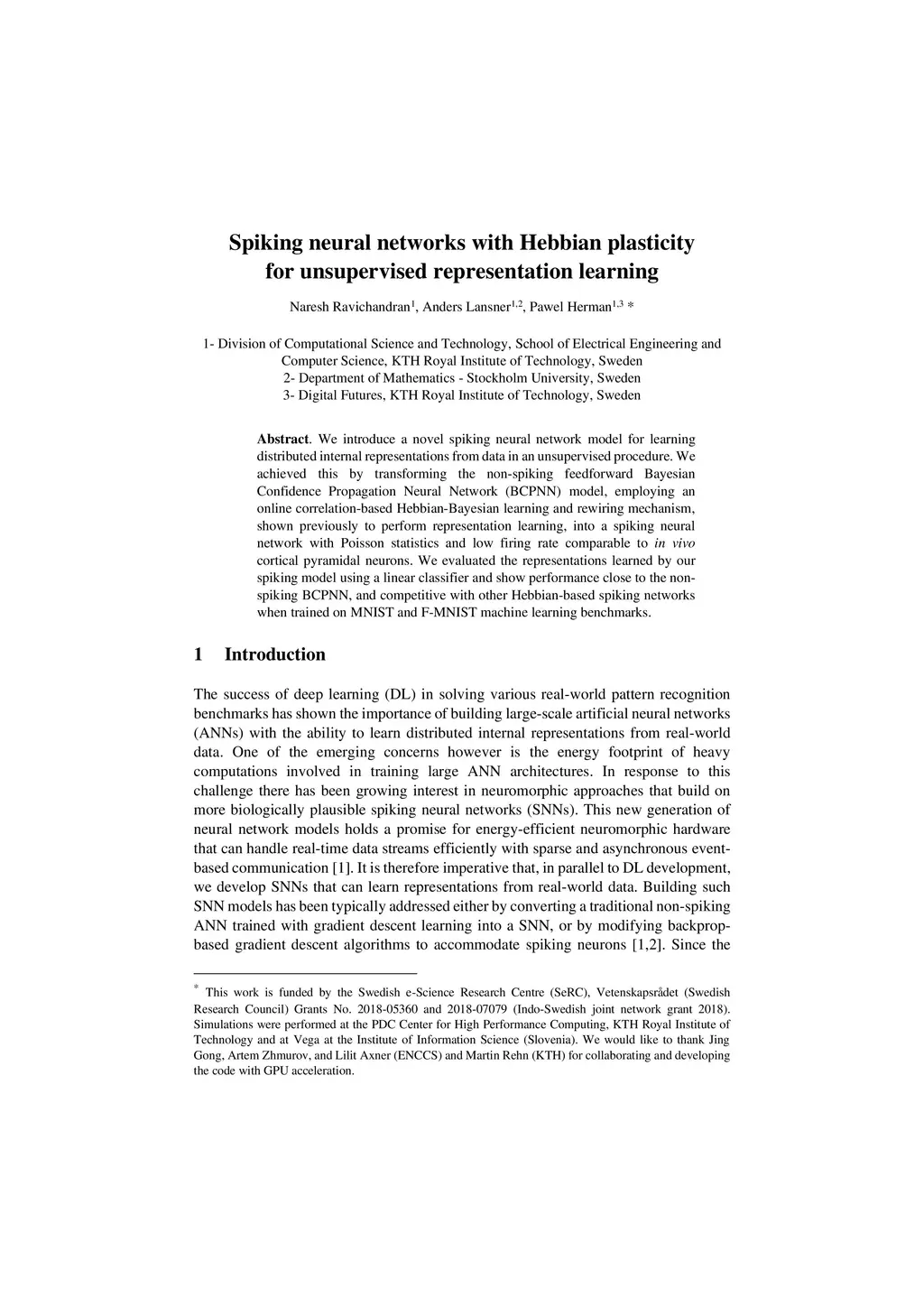Spiking neural networks with Hebbian plasticity for unsupervised
