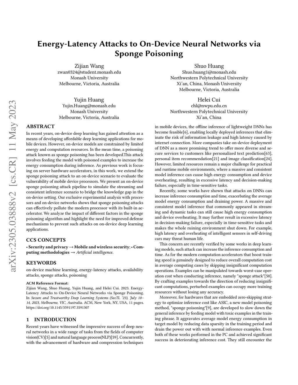 Energy-Latency Attacks to On-Device Neural Networks via Sponge Poisoning