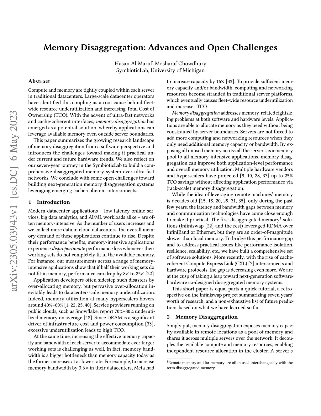 Memory Disaggregation: Advances and Open Challenges
