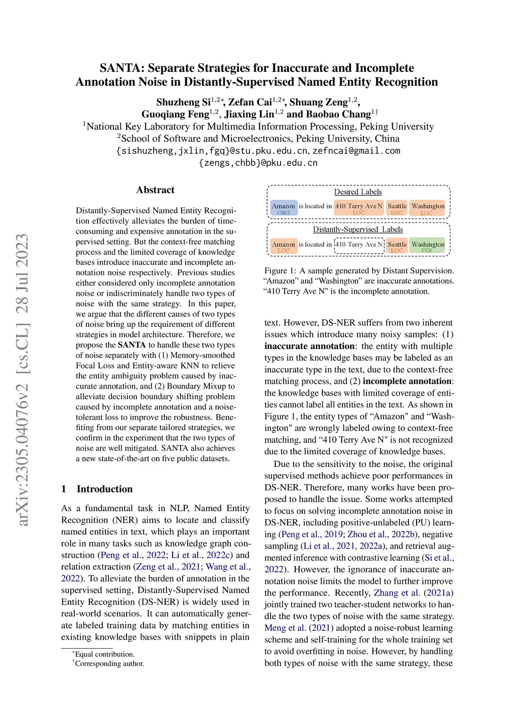 SANTA: Separate Strategies for Inaccurate and Incomplete Annotation Noise in Distantly-Supervised Named Entity Recognition