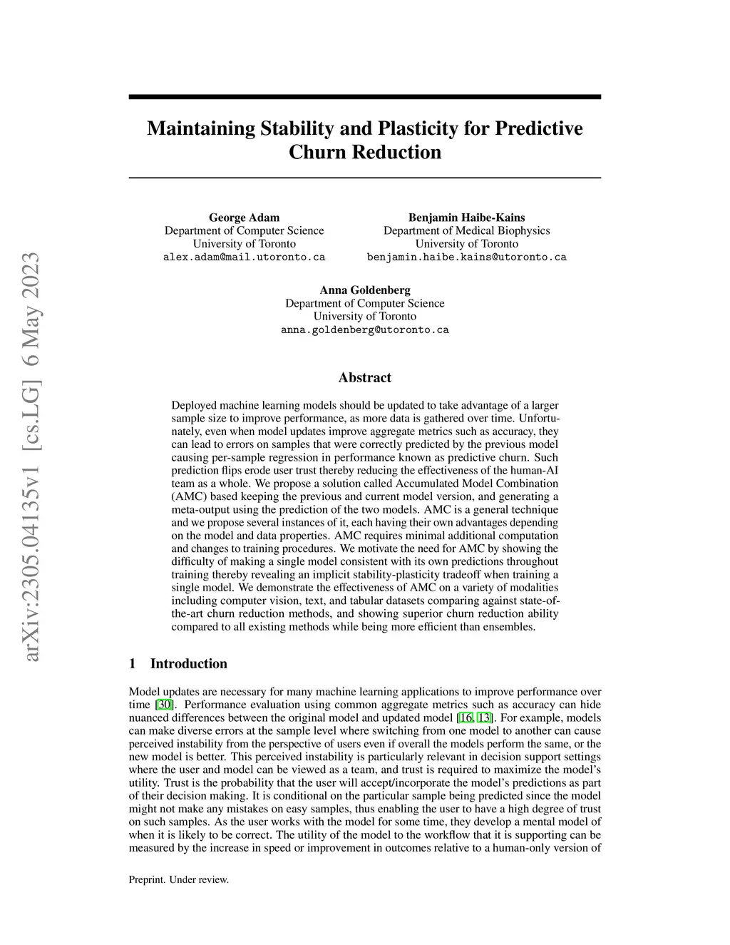 Deployed machine learning models should be updated to take advantage of a larger sample size to improve performance, as more data is gathered over time. Unfortunately, even when model updates improve aggregate metrics such as accuracy, they can lead to errors on samples that were correctly predicted by the previous model causing per-sample regression in performance known as predictive churn. Such prediction flips erode user trust thereby reducing the effectiveness of the human-AI team as a whole. We propose a solution called Accumulated Model Combination (AMC) based keeping the previous and current model version, and generating a meta-output using the prediction of the two models. AMC is a general technique and we propose several instances of it, each having their own advantages depending on the model and data properties. AMC requires minimal additional computation and changes to training procedures. We motivate the need for AMC by showing the difficulty of making a single model consistent with its own predictions throughout training thereby revealing an implicit stability-plasticity tradeoff when training a single model. We demonstrate the effectiveness of AMC on a variety of modalities including computer vision, text, and tabular datasets comparing against state-of-the-art churn reduction methods, and showing superior churn reduction ability compared to all existing methods while being more efficient than ensembles.