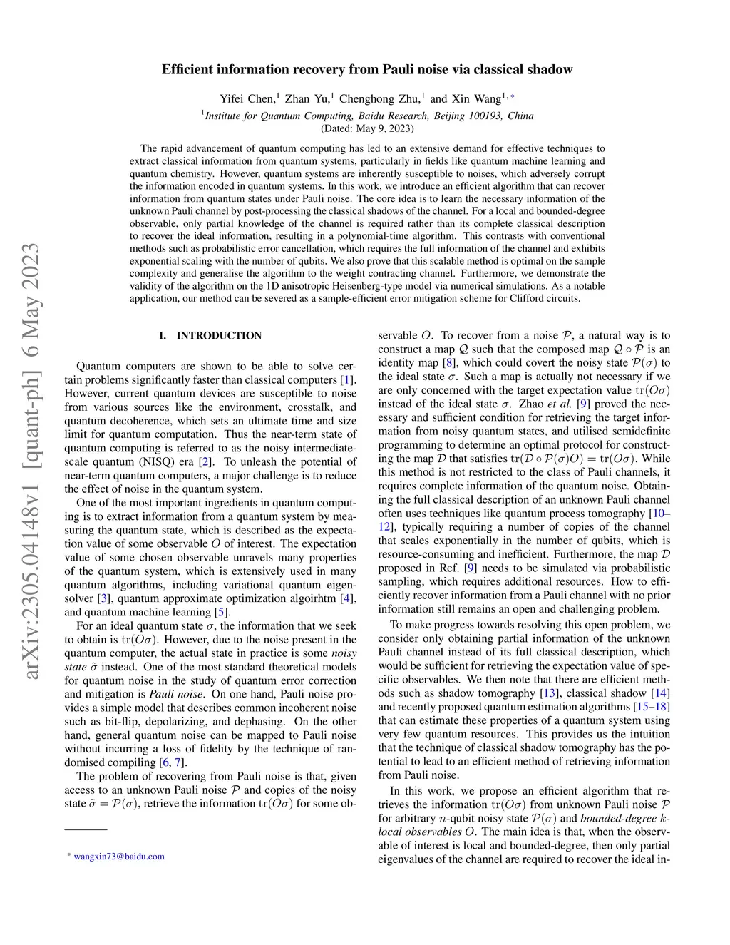 The rapid advancement of quantum computing has led to an extensive demand for effective techniques to extract classical information from quantum systems, particularly in fields like quantum machine learning and quantum chemistry. However, quantum systems are inherently susceptible to noises, which adversely corrupt the information encoded in quantum systems. In this work, we introduce an efficient algorithm that can recover information from quantum states under Pauli noise. The core idea is to learn the necessary information of the unknown Pauli channel by post-processing the classical shadows of the channel. For a local and bounded-degree observable, only partial knowledge of the channel is required rather than its complete classical description to recover the ideal information, resulting in a polynomial-time algorithm. This contrasts with conventional methods such as probabilistic error cancellation, which requires the full information of the channel and exhibits exponential scaling with the number of qubits. We also prove that this scalable method is optimal on the sample complexity and generalise the algorithm to the weight contracting channel. Furthermore, we demonstrate the validity of the algorithm on the 1D anisotropic Heisenberg-type model via numerical simulations. As a notable application, our method can be severed as a sample-efficient error mitigation scheme for Clifford circuits.