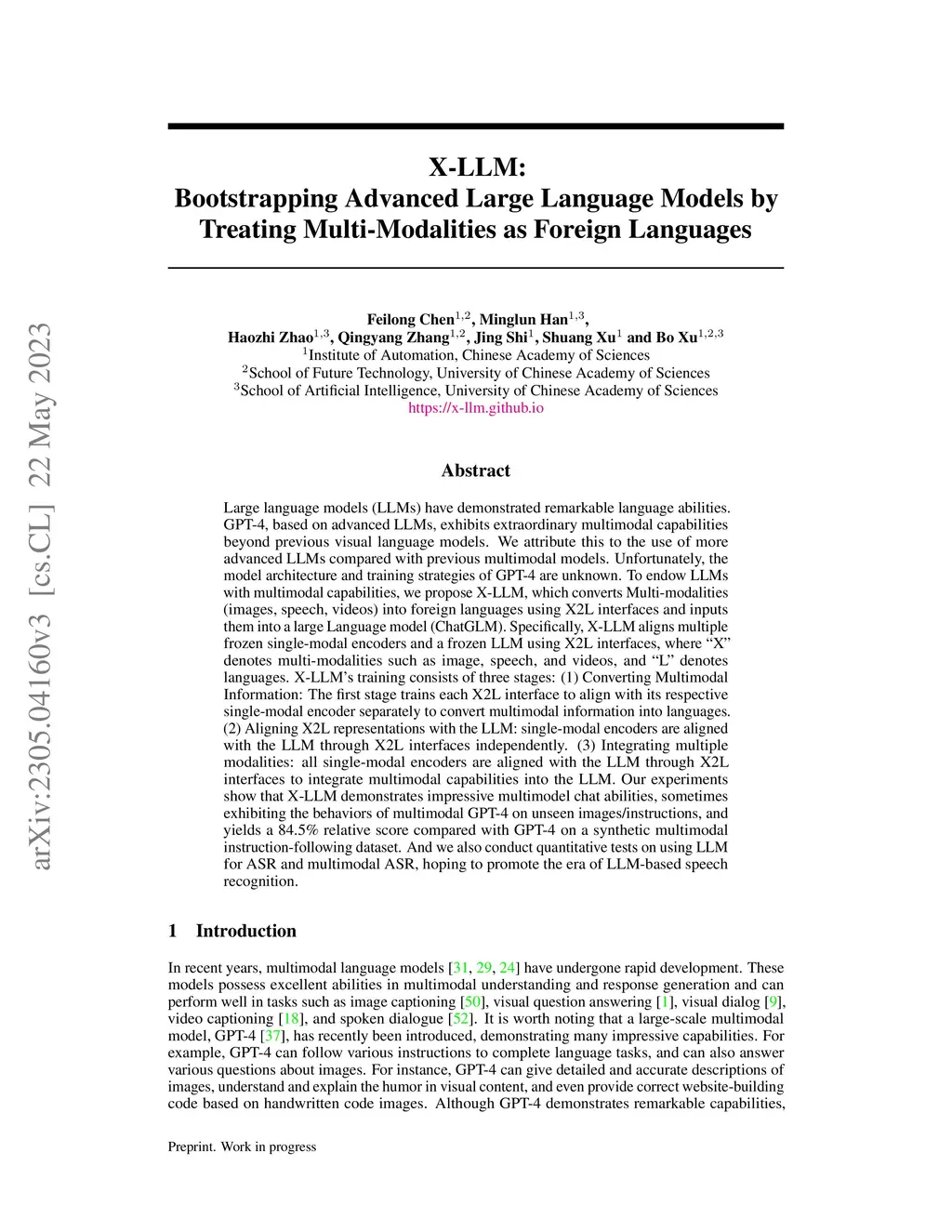 X-LLM: Bootstrapping Advanced Large Language Models by Treating