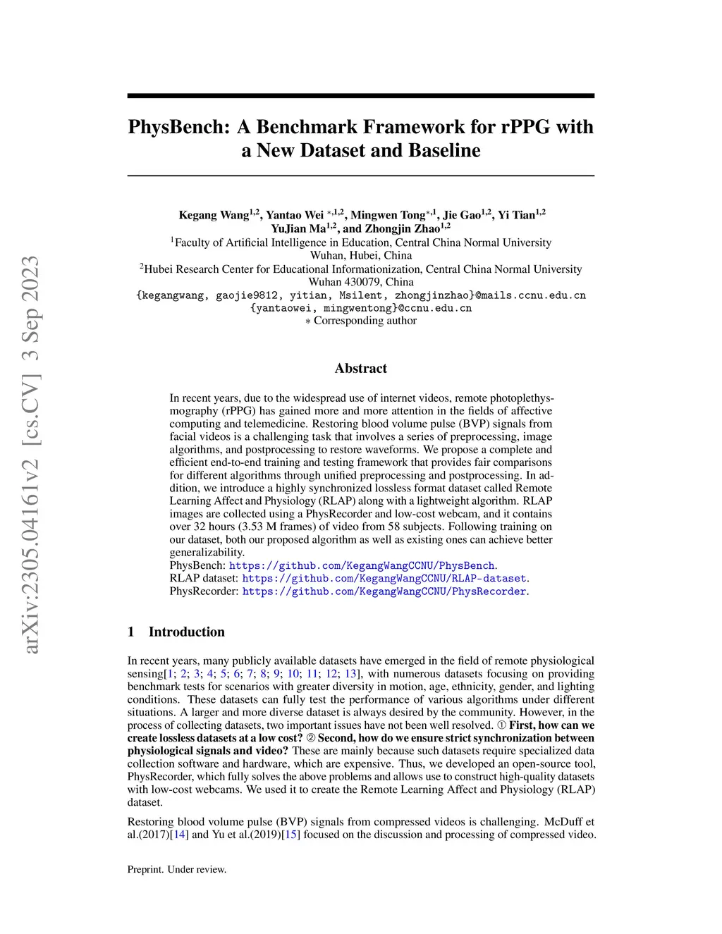 In recent years, due to the widespread use of internet videos, physiological remote sensing has gained more and more attention in the fields of affective computing and telemedicine. Recovering physiological signals from facial videos is a challenging task that involves a series of preprocessing, image algorithms, and post-processing to finally restore waveforms. We propose a complete and efficient end-to-end training and testing framework that provides fair comparisons for different algorithms through unified preprocessing and post-processing. In addition, we introduce a highly synchronized lossless format dataset along with a lightweight algorithm. The dataset contains over 32 hours (3.53M frames) of video from 58 subjects; by training on our collected dataset both our proposed algorithm as well as existing ones can achieve improvements.