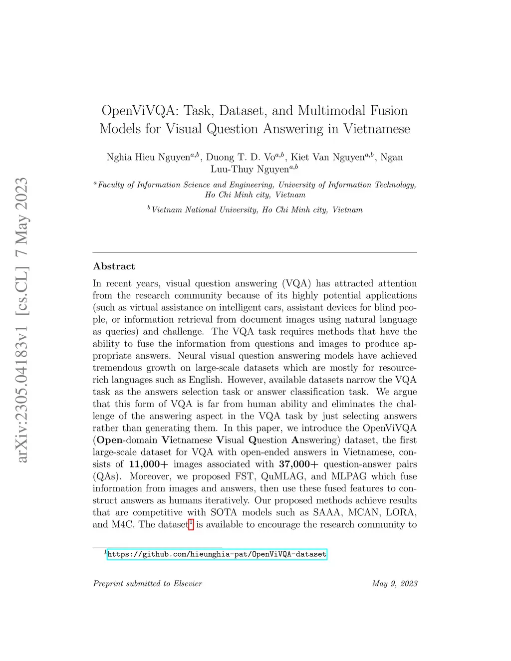 OpenViVQA: Task, Dataset, and Multimodal Fusion Models for Visual