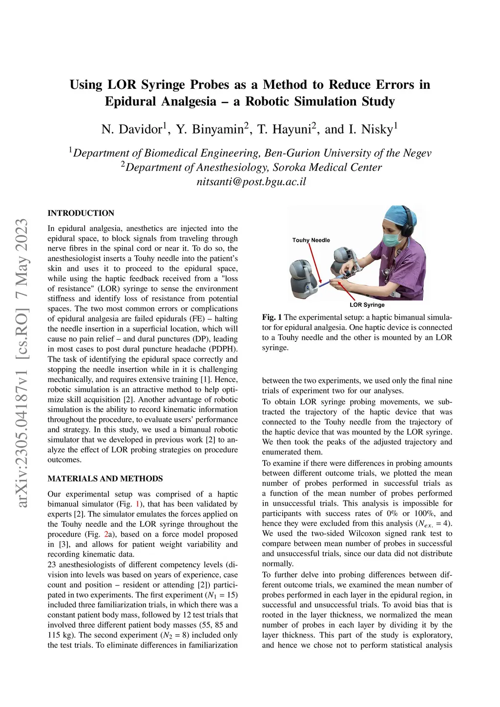 Using LOR Syringe Probes as a Method to Reduce Errors in Epidural