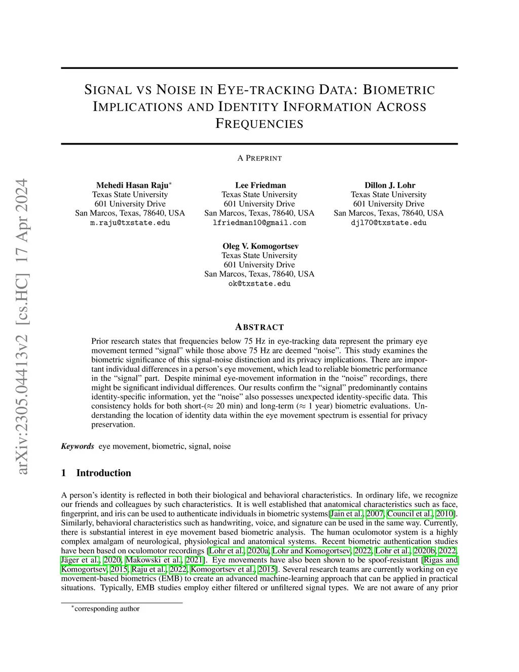 Signal vs Noise in Eye-tracking Data: Biometric Implications and