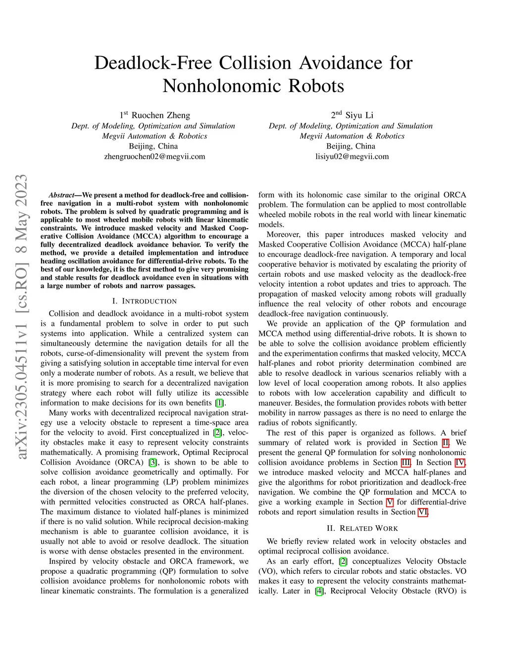 Deadlock-Free Collision Avoidance for Nonholonomic Robots