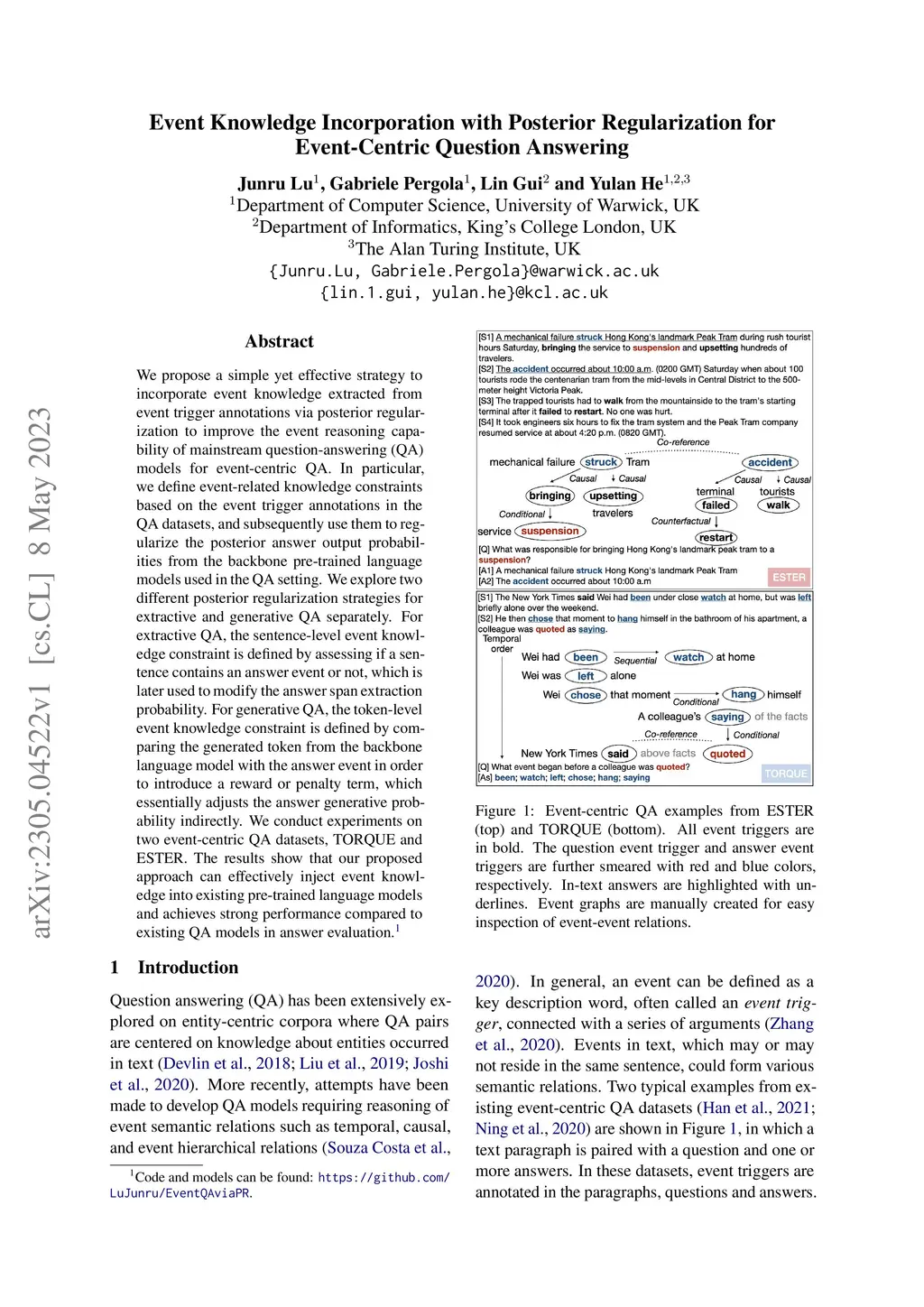 We propose a simple yet effective strategy to incorporate event knowledge extracted from event trigger annotations via posterior regularization to improve the event reasoning capability of mainstream question-answering (QA) models for event-centric QA. In particular, we define event-related knowledge constraints based on the event trigger annotations in the QA datasets, and subsequently use them to regularize the posterior answer output probabilities from the backbone pre-trained language models used in the QA setting. We explore two different posterior regularization strategies for extractive and generative QA separately. For extractive QA, the sentence-level event knowledge constraint is defined by assessing if a sentence contains an answer event or not, which is later used to modify the answer span extraction probability. For generative QA, the token-level event knowledge constraint is defined by comparing the generated token from the backbone language model with the answer event in order to introduce a reward or penalty term, which essentially adjusts the answer generative probability indirectly. We conduct experiments on two event-centric QA datasets, TORQUE and ESTER. The results show that our proposed approach can effectively inject event knowledge into existing pre-trained language models and achieves strong performance compared to existing QA models in answer evaluation. Code and models can be found: https://github.com/LuJunru/EventQAviaPR.