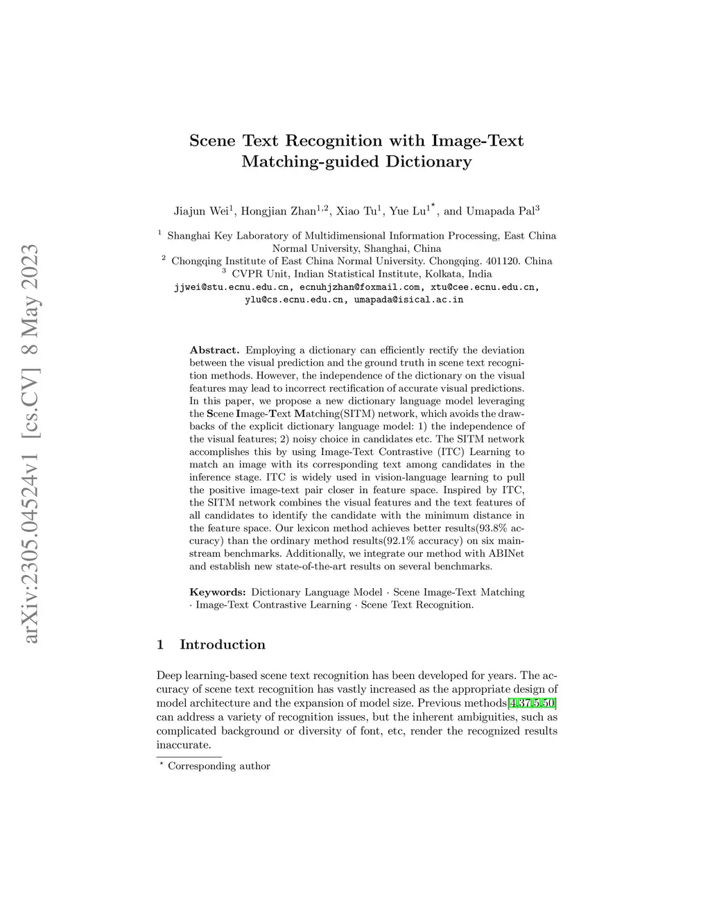 Scene Text Recognition with Image-Text Matching-guided Dictionary