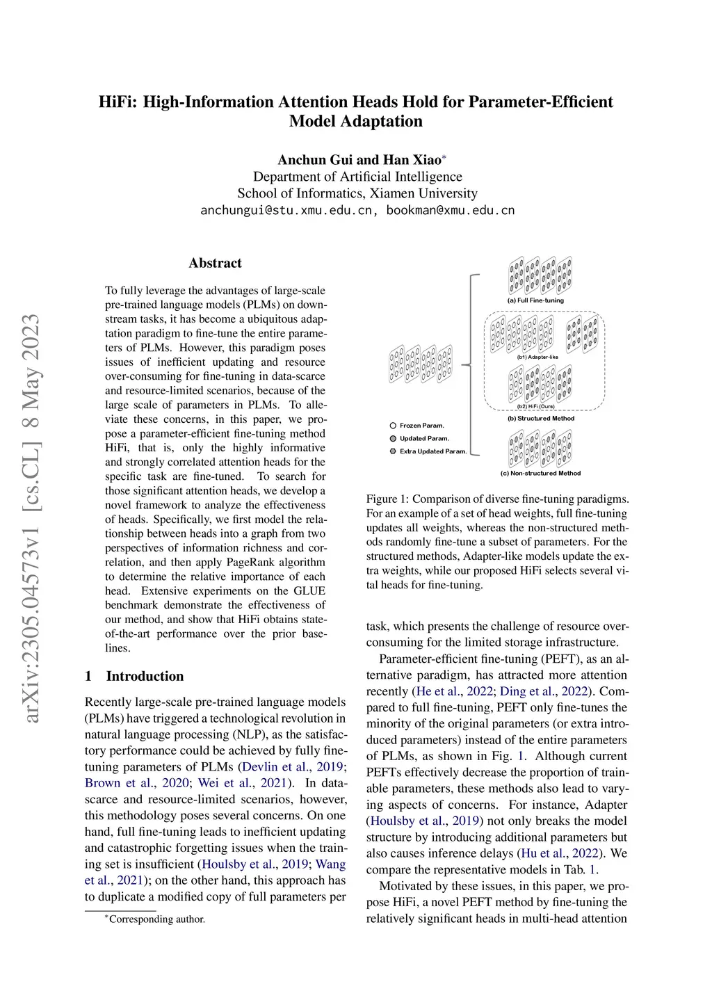 HiFi: High-Information Attention Heads Hold for Parameter-Efficient