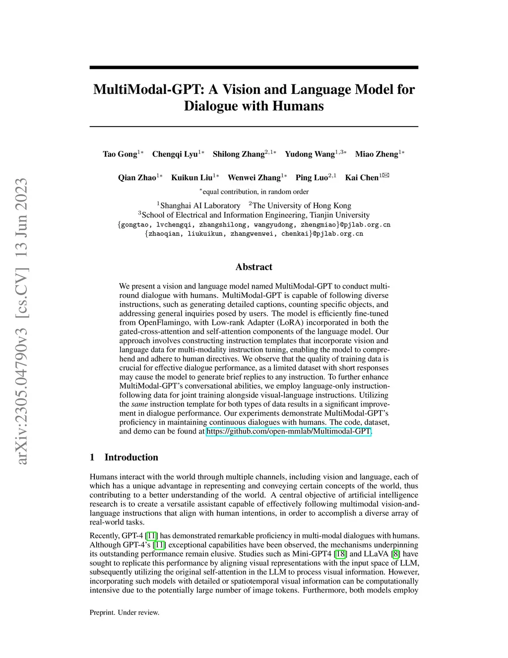MultiModal-GPT: A Vision and Language Model for Dialogue with Humans
