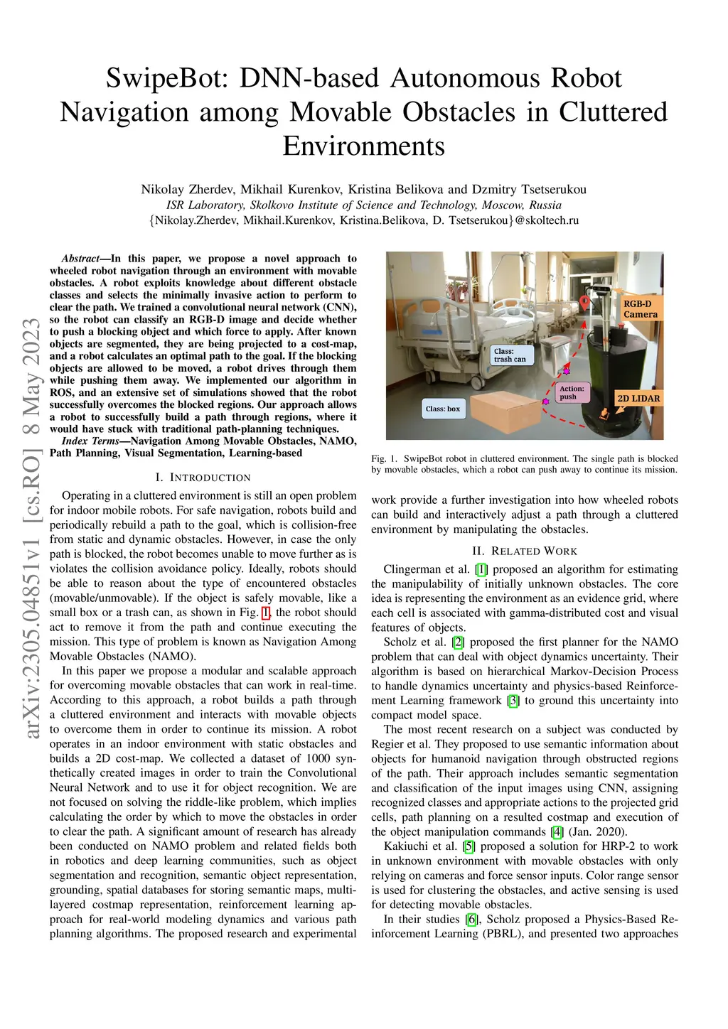 SwipeBot: DNN-based Autonomous Robot Navigation among Movable Obstacles