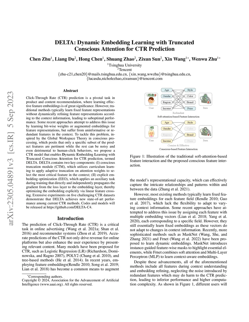 DELTA: Dynamic Embedding Learning with Truncated Conscious Attention for