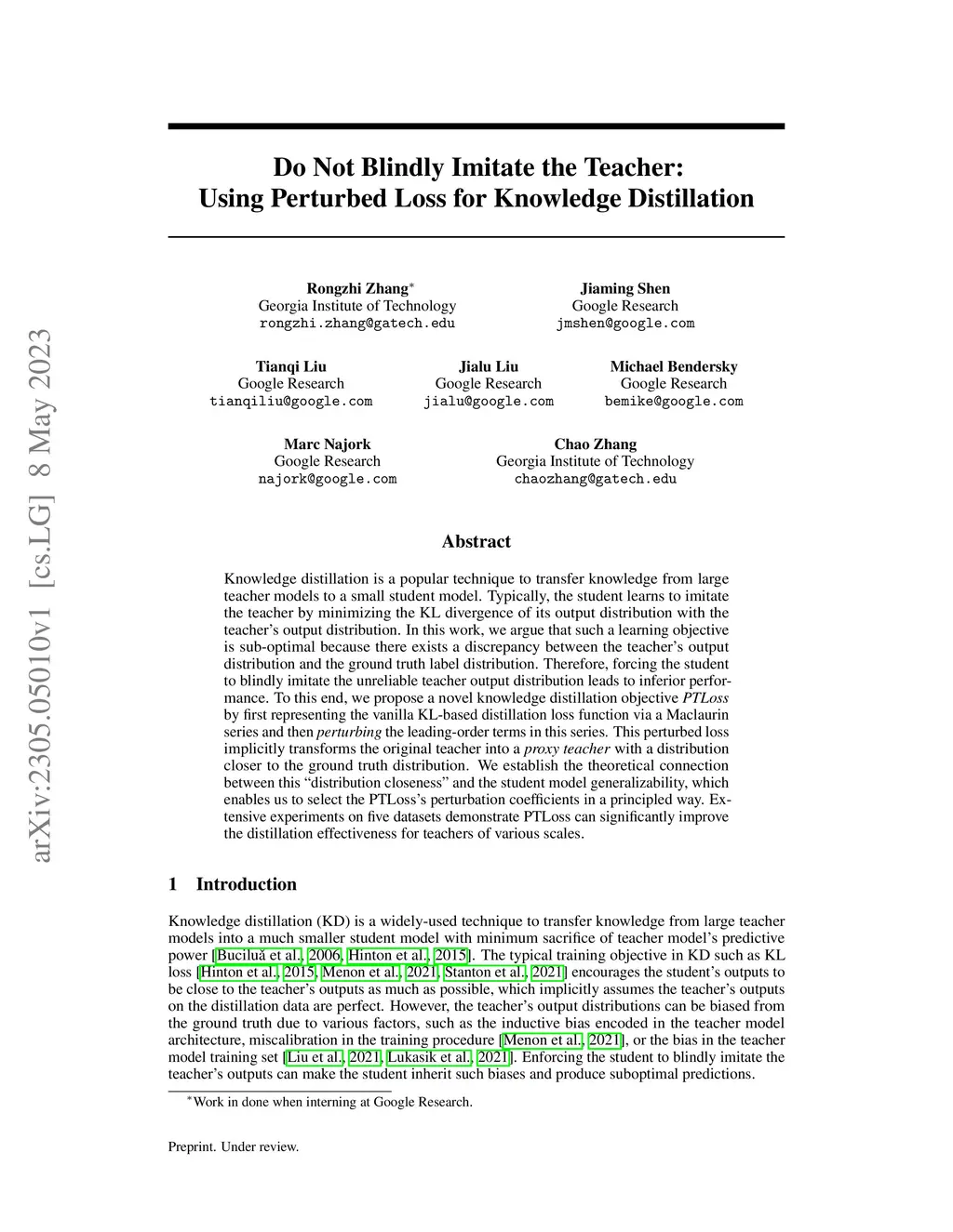 Do Not Blindly Imitate the Teacher: Using Perturbed Loss for Knowledge