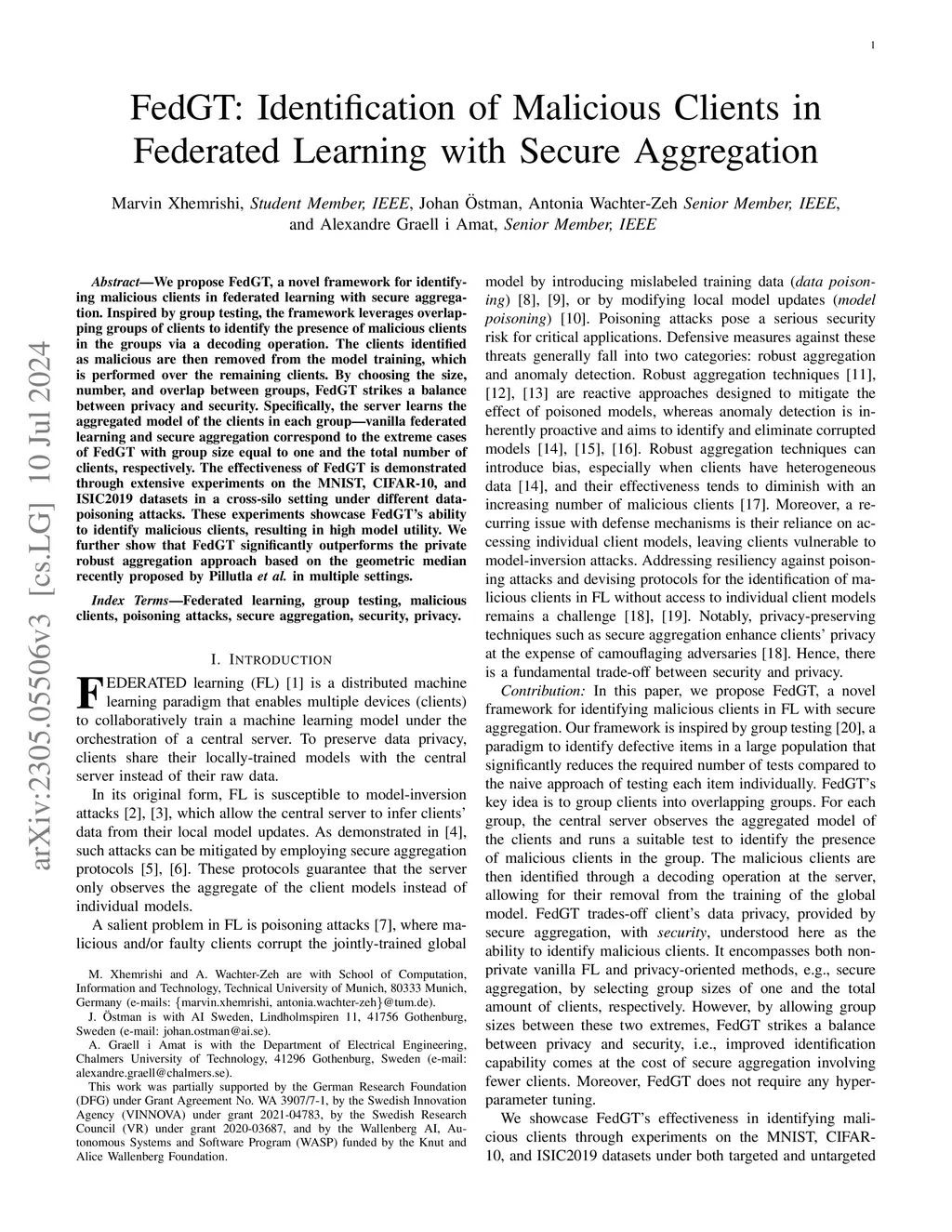 FedGT: Identification of Malicious Clients in Federated Learning with