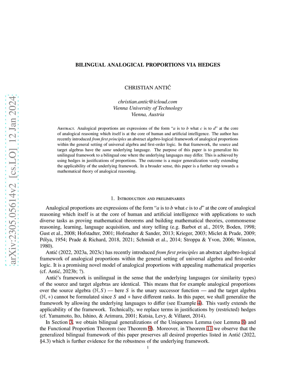 Bilingual analogical proportions via hedges