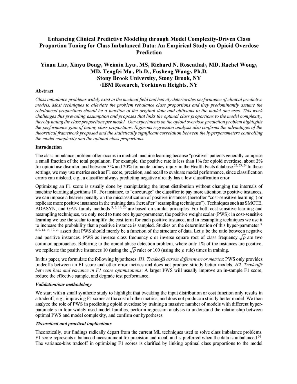 Class imbalance problems widely exist in the medical field and heavily deteriorates performance of clinical predictive models. Most techniques to alleviate the problem rebalance class proportions and they predominantly assume the rebalanced proportions should be a function of the original data and oblivious to the model one uses. This work challenges this prevailing assumption and proposes that links the optimal class proportions to the model complexity, thereby tuning the class proportions per model. Our experiments on the opioid overdose prediction problem highlight the performance gain of tuning class proportions. Rigorous regression analysis also confirms the advantages of the theoretical framework proposed and the statistically significant correlation between the hyperparameters controlling the model complexity and the optimal class proportions.