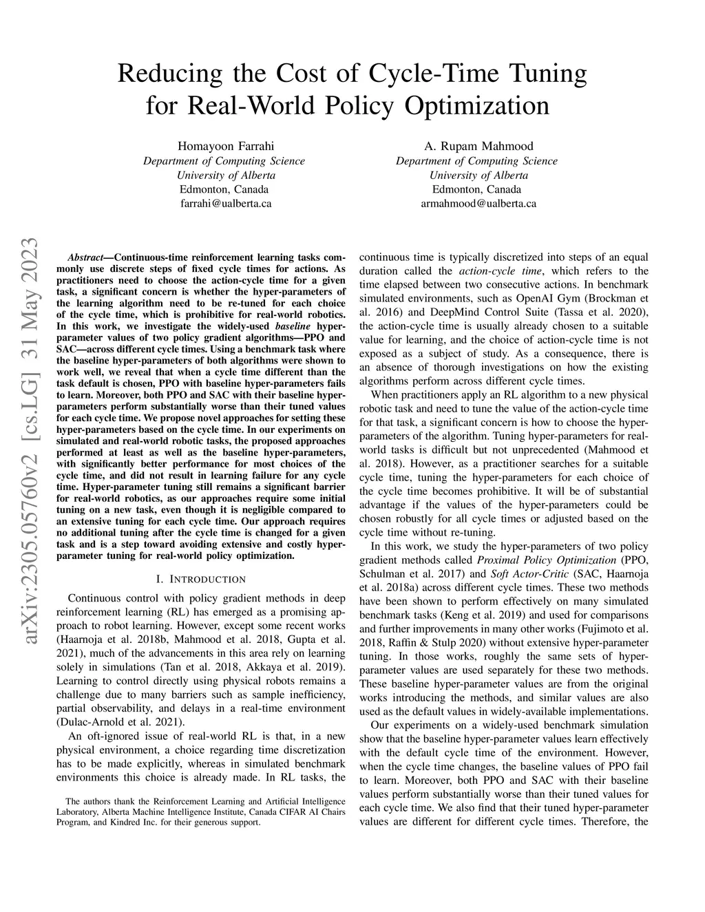 Reducing the Cost of Cycle-Time Tuning for Real-World Policy