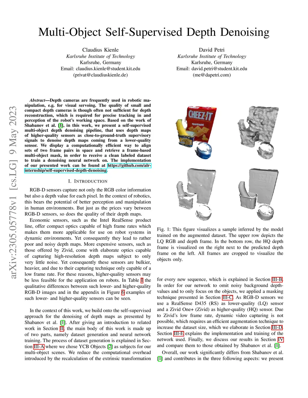 Multi-Object Self-Supervised Depth Denoising